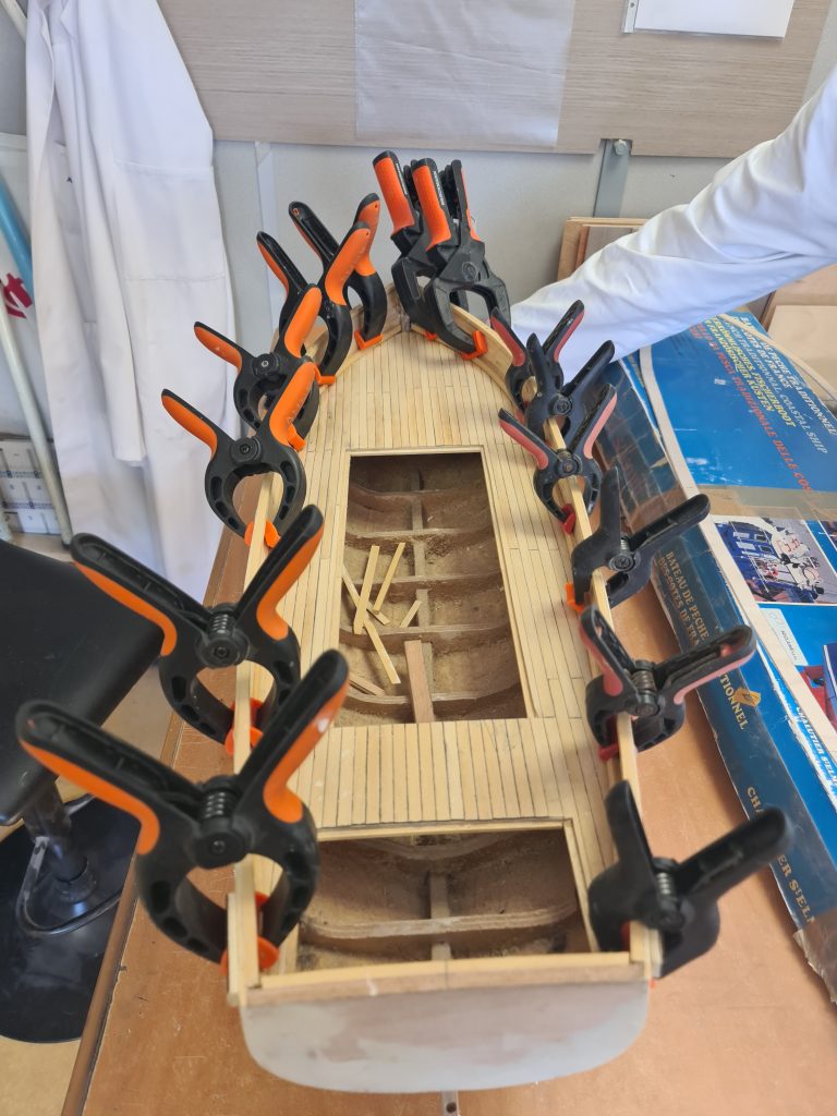 Séance paisible du samedi 28 mars Séance paisible du samedi 28 mars 28 mars 2026 Patrick Barbieux Prochain bateau pour aller à la pèche à la langoustine Après le séchage, ponçage Finition du pont ? perçage minutieux Précision et petites pièces Préparation des coupes Mouvement de ponçage Coque pincée ! Coupes passant à la 2 ème phase, découpe interne JOYEUX ANNIVERSAIRE YANN